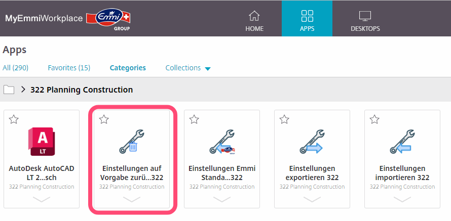 Um alle Einstellungen in AutoCAD LT 2023 zurückzusetzen, starte die Citrix Anwendung Einstellungen auf Vorgabe zurücksetzen 322.