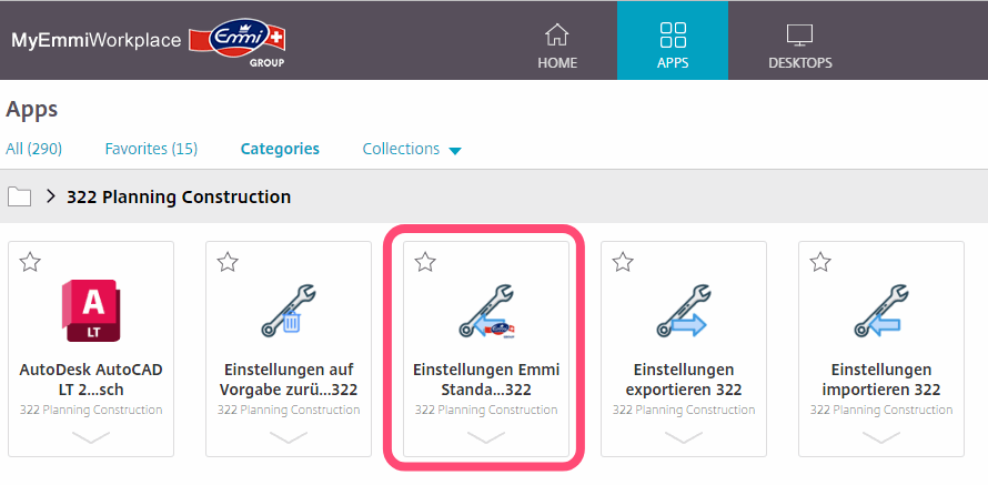 Um die AutoCAD LT 2023 Emmi Standard Einstellungen zu importieren, starte die Citrix Anwendung Emmi Standard Einstellungen importieren.